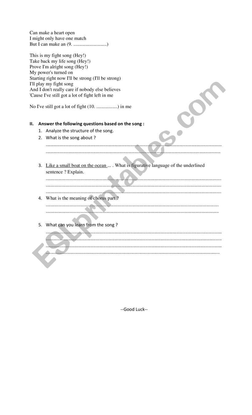Worksheet Song Esl Worksheet By Yuli Pradana Aiesec Net